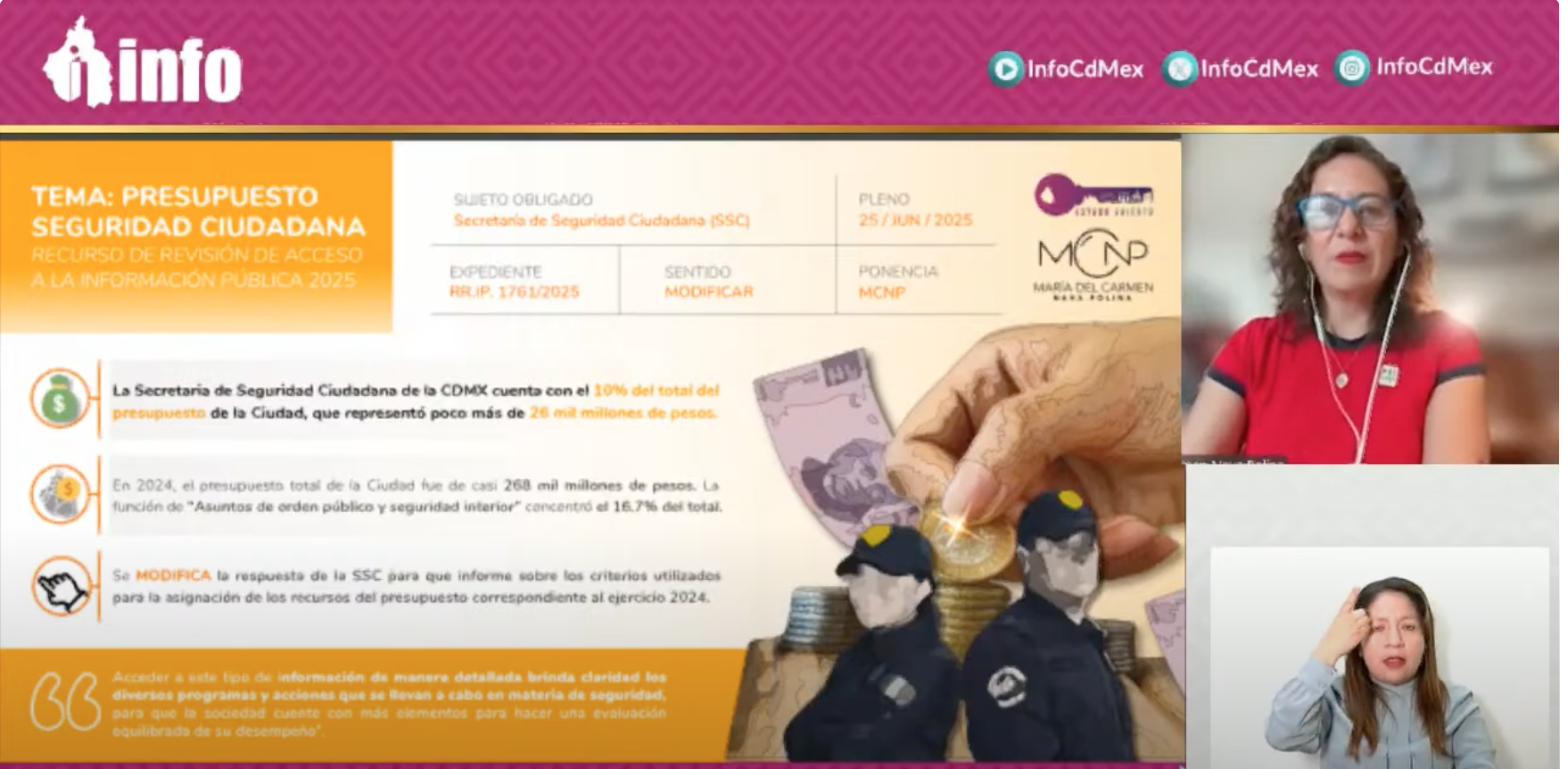 RESUELVE INFO CDMX RECURSO RELACIONADO CON PRESUPUESTO DE LA SSC
