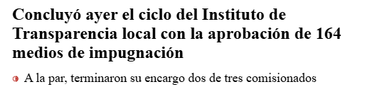 Por falta de quórum, el órgano garante de la Ciudad no sesionará más por la conclusión del encargo de la Comisionada María del Carmen Nava