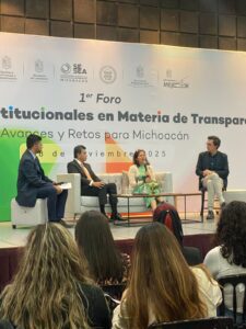 El primer panel se tituló Perspectivas de futuro: hacia una cultura de la transparencia y la anticorrupción en el Estado, con la participación del Dr. Diego García Ricci, quien hizo un recuento sobre las reformas en transparencia y destacó el mapa de la extinción de las autonomías que semana a semana actualizamos en mi equipo de trabajo; por su parte el Magistrado Carlos Enrique Verduzco mostró que el sistema anticorrupción ya cuenta con una infraestructura sólida y avances en la articulación para aplicar el modelo anticorrupción. Finalmente, el Dr. Mario Cruz Martínez habló de los primeros foros que se realizaron en 2008 sobre derechos humanos y cómo se consideraban una moda de activistas y organizaciones sociales, pero ahora se cuenta con mucho trabajo académico y de consultoría en la materia.
