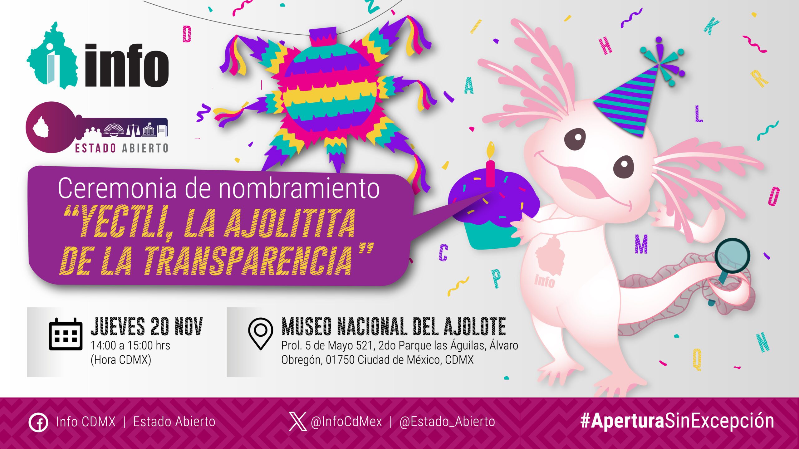 Invitación al evento para nombrar a una ajolotita real como “Yectli” Quiero invitarles y compartir que vamos a tener la presentación de un ejemplar