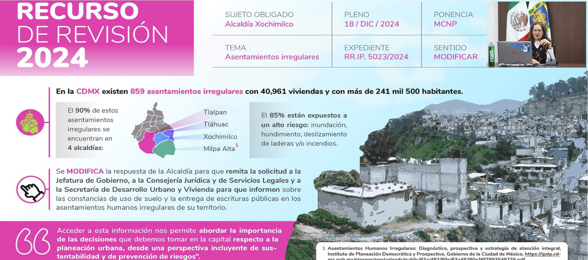 RESUELVE INFO CDMX A FAVOR DE TRANSPARENTAR INFORMACIÓN SOBRE ASENTAMIENTOS HUMANOS IRREGULARES EN XOCHIMILCO