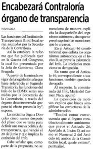 En el Artículo 46 constitucional, que enlista los organismos autónomos, en el Inciso D, se prevé la existencia del Info. La iniciativa menciona su derogación.