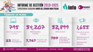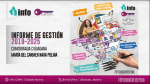 En esta última sesión ordinaria que tendrá el INFO de la Ciudad de México, quiero hacer la entrega de mi informe de gestión 2018-2025, en el cual se pueden encontrar de manera detallada todas las actividades y resultados alcanzados en mi desempeño como comisionada ciudadana de éste órgano colegiado y autónomo, junto con el equipo de trabajo que me acompañó, en la consecución del Plan Estratégico que guió las actividades de impulso a la apertura institucional y el Estado Abierto.