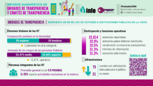 Este Diagnóstico es el decimoprimero que realizamos durante mi gestión y el primero en su clase que analiza de manera conjunta estas dos estructuras. Para realizarlo se elaboró un cuestionario autogestivo para preguntar a las instituciones y actores públicos de la Ciudad de México de manera directa, sobre la integración y funcionamiento de las unidades y los comités de transparencia.