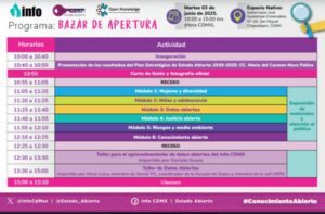 Comparto por supuesto también el programa de actividades que lo pueden dar seguimiento en las redes sociales del INFO de la Ciudad de México. El primer taller será de 12:30 a 13:30 y el segundo de 13:30 a 15:00 horas.