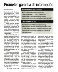 La titular de la Contrataría General de la Ciudad, Nashieli Ramírez, prometió que se continuará con la garantía de acceso a la información a través del nuevo órgano encargado de este derecho.