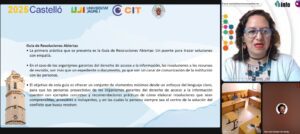 Resalté sobretodo que el modelo de resoluciones abiertas de esta guía incluye un diseño de carátula que es lo primero que la persona observa, donde tiene de manera sencilla y entendible, la información que contiene la resolución y que lo hemos aplicado en más de 1300 casos y compartí también el mecanismo de retroalimentación que implementamos donde más del 80% de las personas recurrentes que han contestado el cuestionario que les acercamos en la propia resolución, refirieron estar satisfechas con su experiencia de lectura en la resolución y volverían a acudir a este Info de la Ciudad de México.
