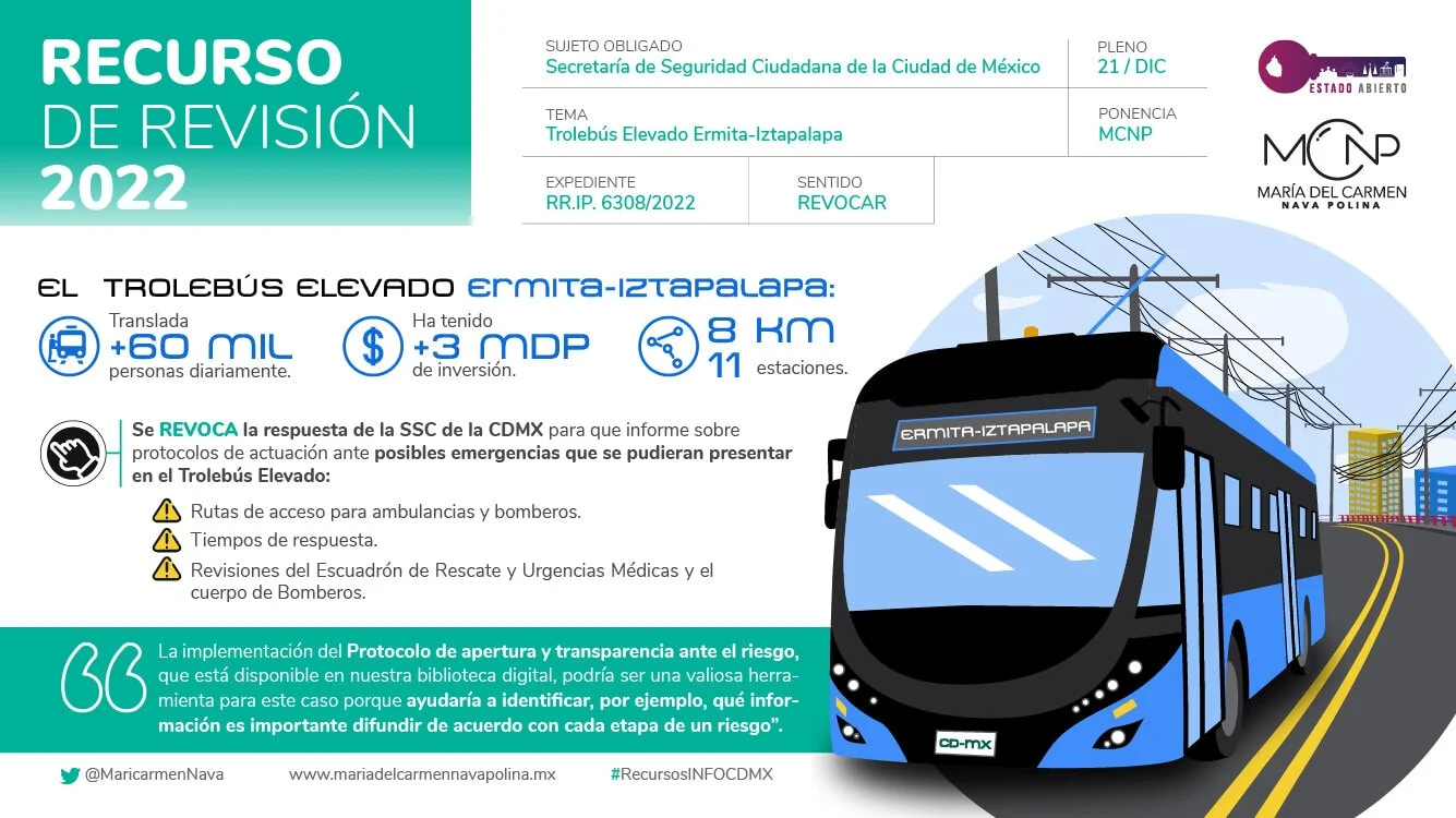 Nos pareció relevante exponer este caso porque se trata del ejercicio del derecho de acceso a la información para conocer la manera en la que las autoridades atienden la gestión de riesgos en un medio de transporte de especial relevancia para la población, como es el nuevo Trolebús Elevado.