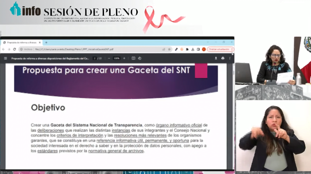 Posicionamiento de la comisionada Nava Polina sobre la entrega del informe semanal, destacándose reuniones con grupos de trabajo de la ICIC y de la RIJA