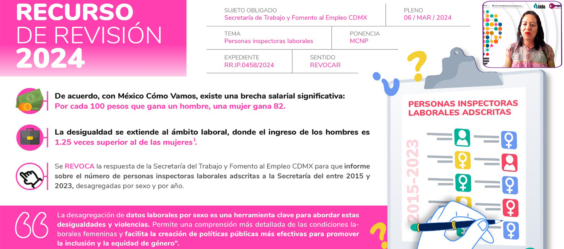 Info CDMX instruyó a la Secretaría del Trabajo y Fomento al Empleo entregar información sobre personas inspectoras desagregada por sexo