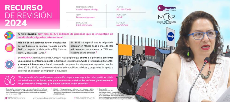 María del Carmen Nava Polina, Comisionada del INFO CDMX, posicionó el recurso de revisión INFOCDMX/RR.IP.1993/2024, en contra de la alcaldía Miguel Hidalgo. Se solicitó información