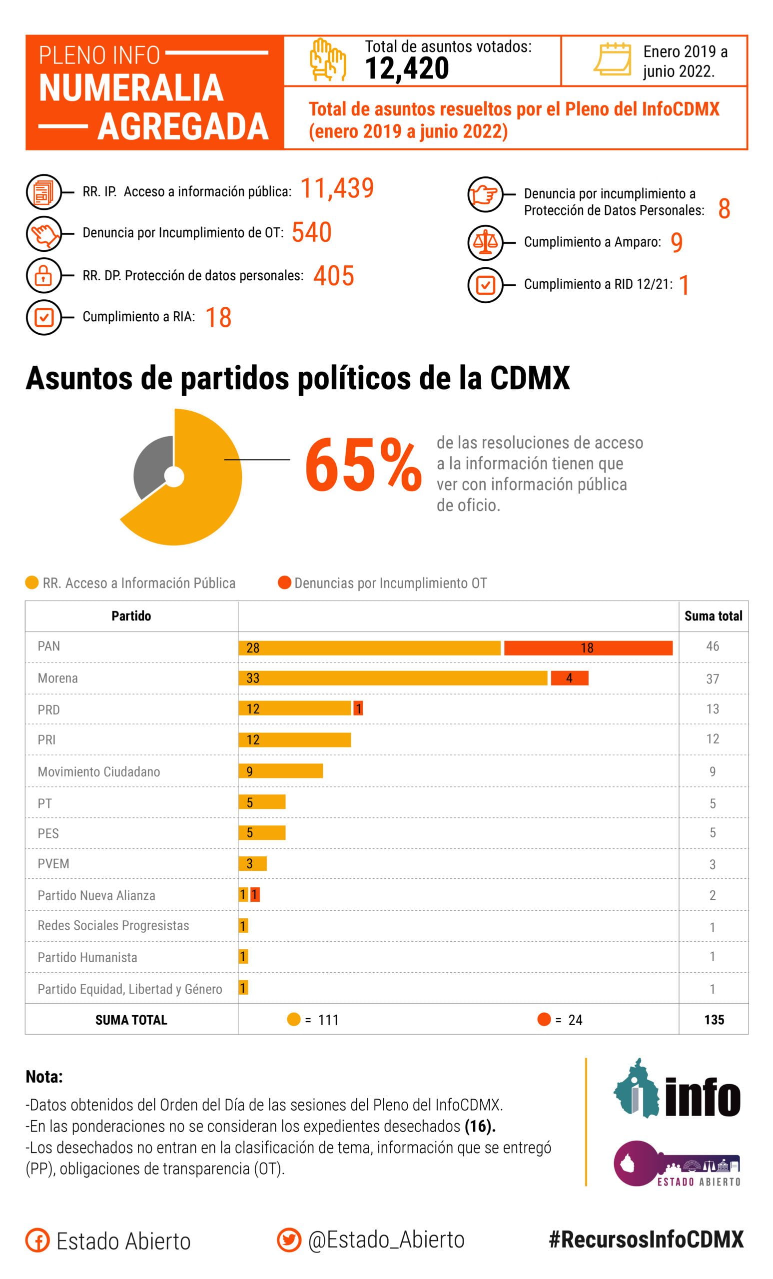 Total de asuntos resueltos por el Pleno del InfoCDMX (enero 2019 a junio 2022) Tipo Total RR.IP. Acceso a información pública 11,439 Denuncia por