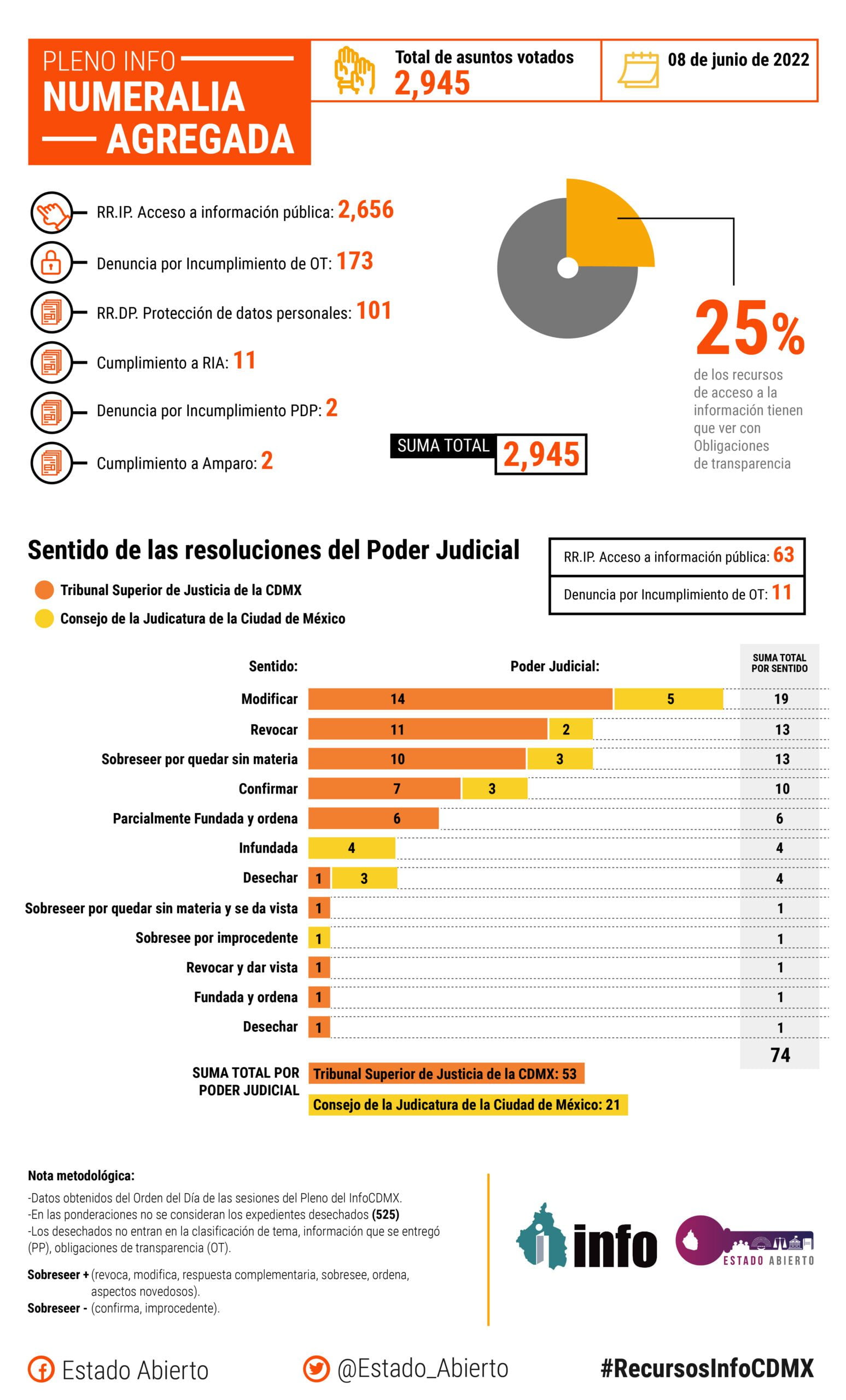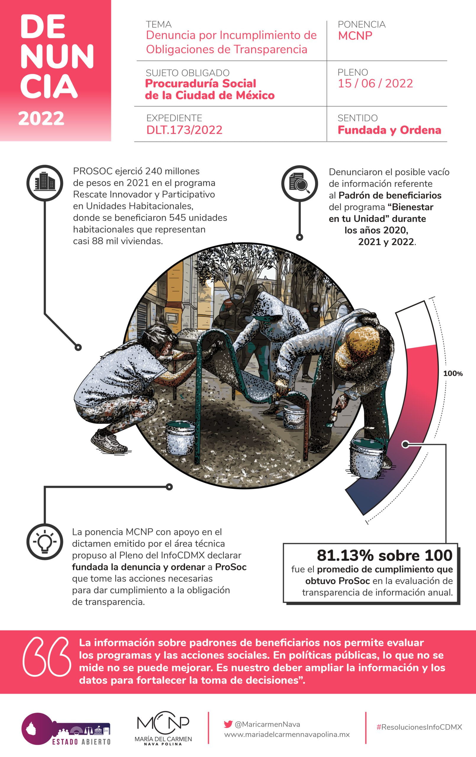 Durante la 22a sesión ordinaria del pleno del InfoCDMX, se aprobó por unanimidad una resolución de denuncia de probables vacíos de información proyectada por la