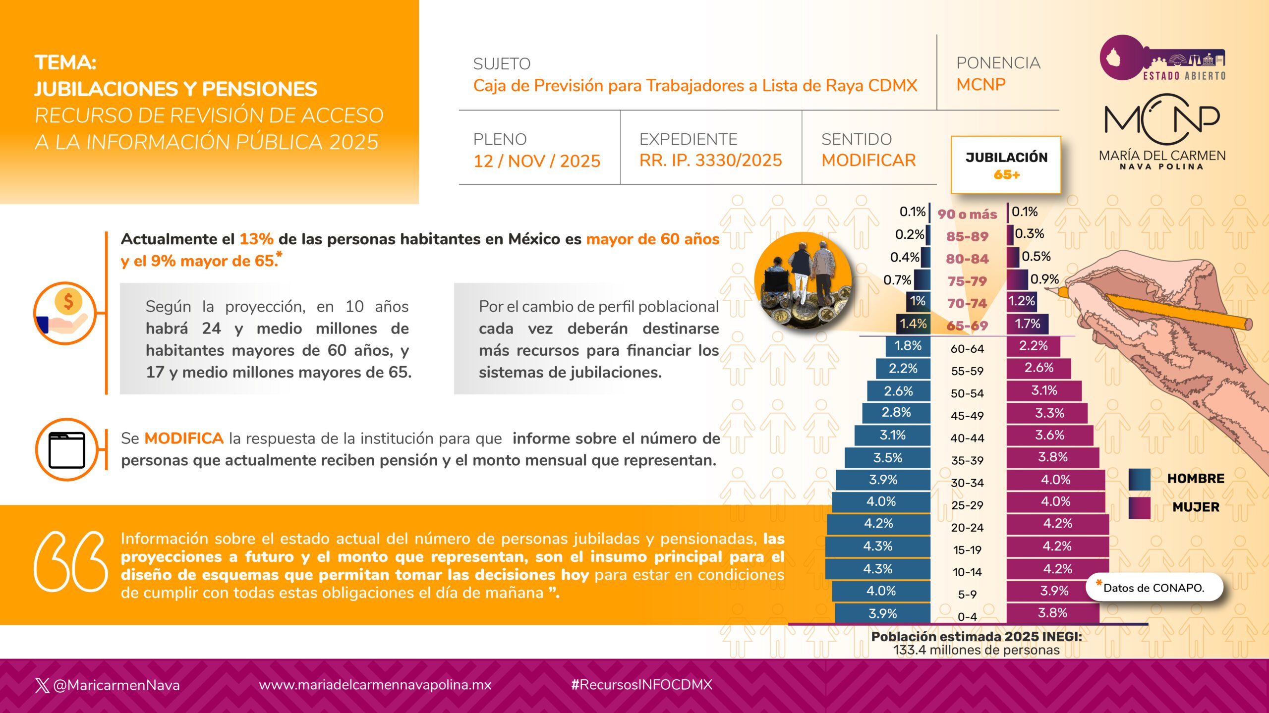En el análisis que desarrollamos en la Ponencia a mi cargo encontramos que el agravio del recurso de revisión es fundado, porque la persona no pidió de manera específica la información referida a la Manifestación de Impacto Ambiental, sino que solicitó un pronunciamiento de manera general sobre medidas y acciones para subsanar las consecuencias de la construcción del puente vehicular referido.